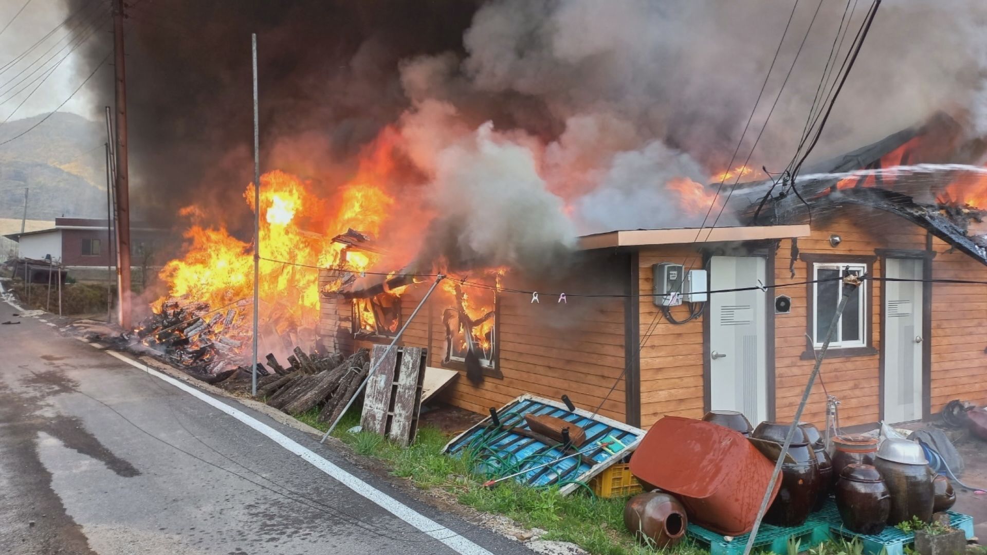 집 안에 있던 20대 남성이 불을 끄다 화상을 입었고, 주택과 창고 등 250 여 제곱미터가 불에 타 소방서 추산 5,600만 원의 재산피해가 났습니다.
