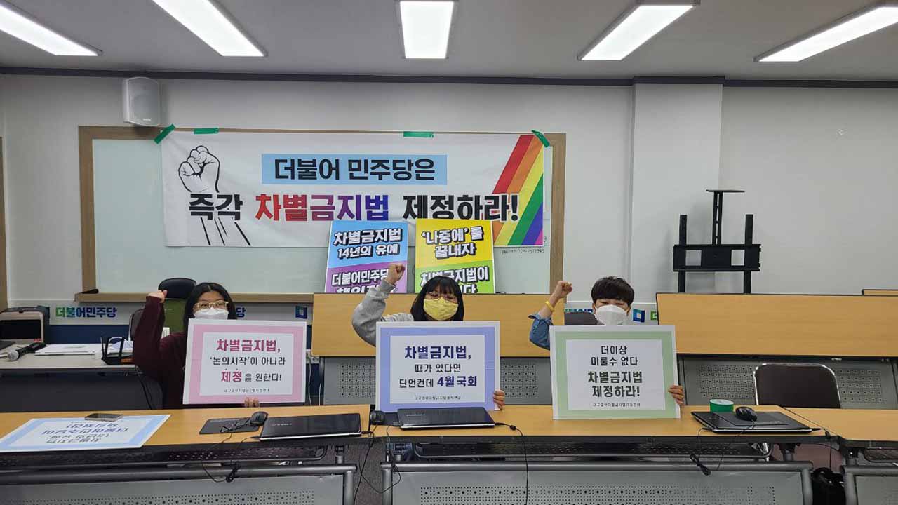 대구·경북 차별금지법제정연대가 즉각적인 차별금지법 제정을 요구하며 더불어민주당 대구시당에서 점거 농성을 시작했습니다.