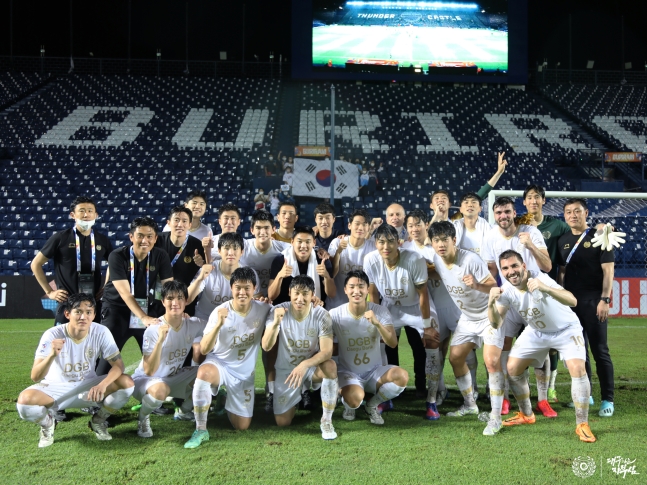 대구FC는 30일 저녁 태국 부리람에서 펼쳐진 ACL 조별 리그 마지막 경기에서 이근호의 동점골과 제카의 페널티킥 득점으로 라이언시티에게 2대 1로 역전승을 거두며 승점 3점을 더해 F조 1위를 확정, 목표했던 16강 진출에 성공했습니다.