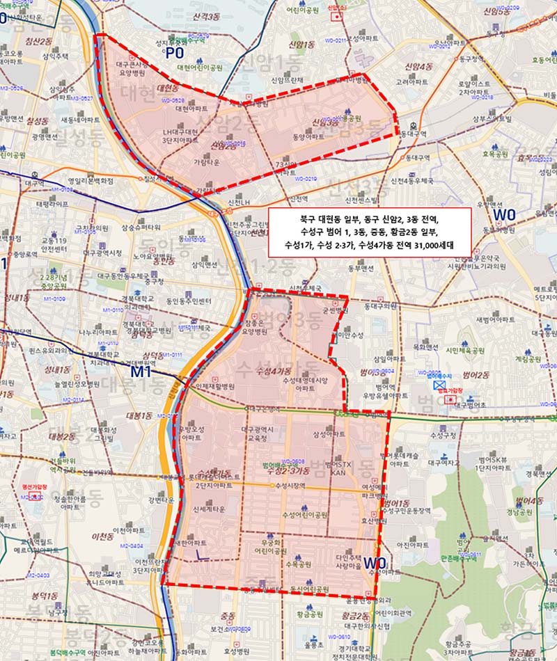 해당 지역은 동구 신암 2·3동과 수성구 범어1·3동, 수성1·2·3·4가동, 북구 대현동 등 3만 천 가구로 이들 지역은 수계 조정 작업으로 인해 9일 밤 10시부터 다음 날 새벽 6시까지 흐린 수돗물이 나올 수 있습니다.
