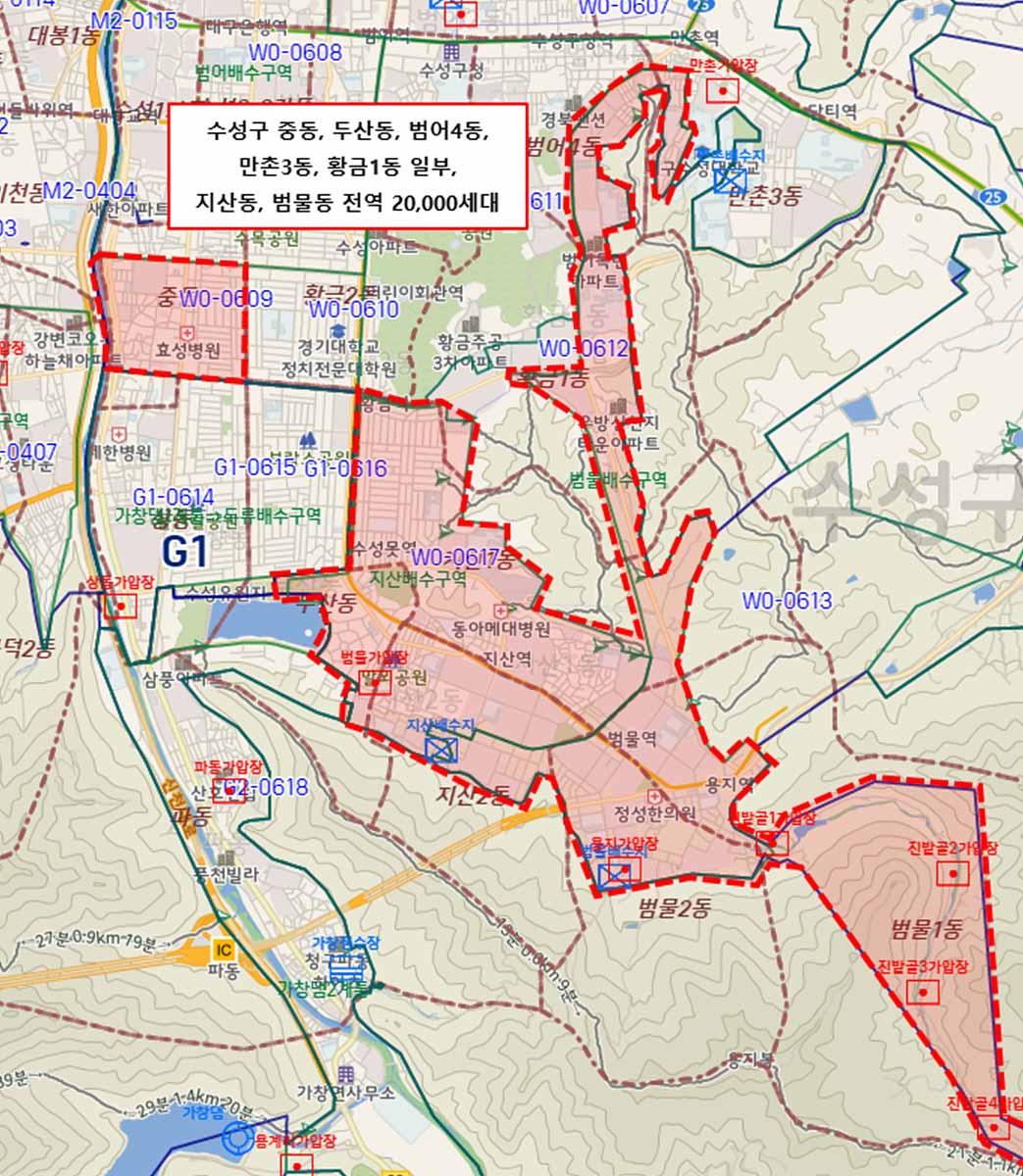 5월 12일 밤 10시부터 13일 새벽 6시 사이 대구 수성구 중동과 두산동, 범어4동, 황금1동 일부, 지산동, 범물동 2만 가구에서 흐린 수돗물이 나올 수 있습니다.