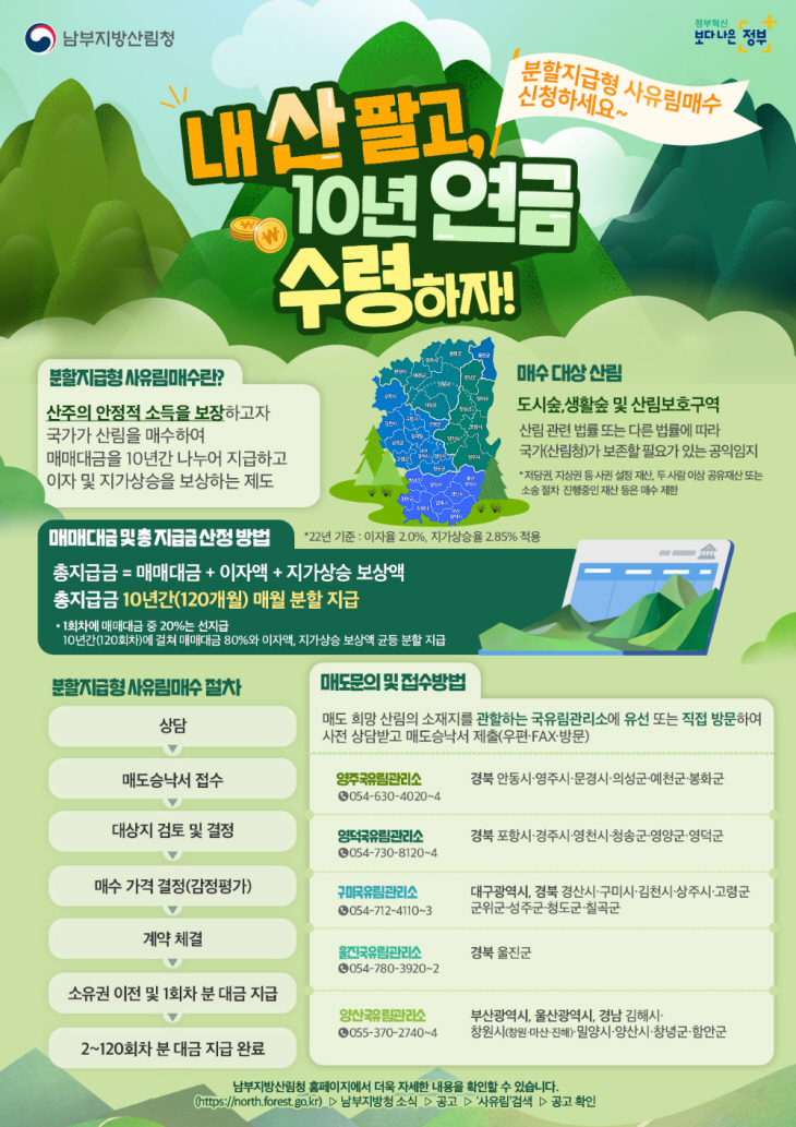 남부지방산림청이 분할 지급형 사유림 매수 제도를 추진합니다.