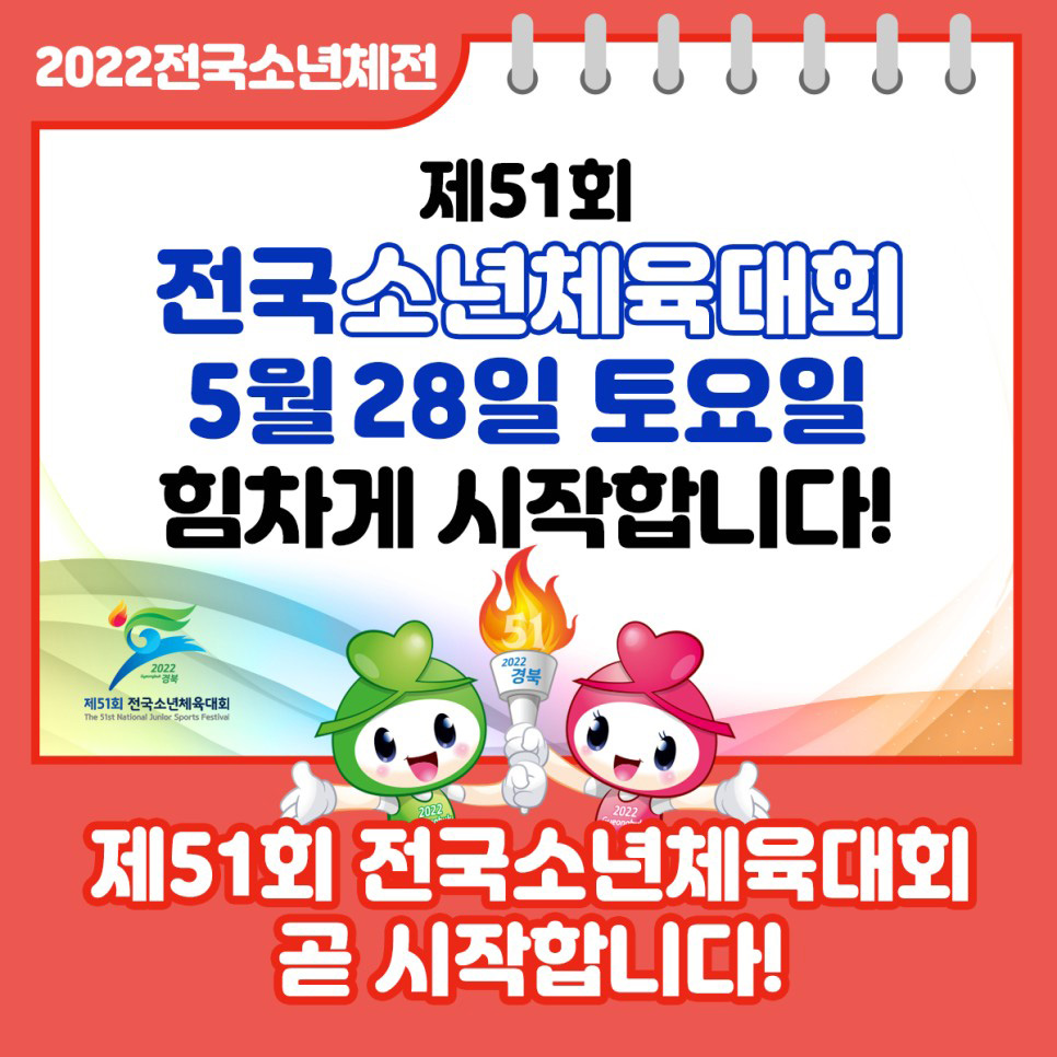 제51회 전국소년체육대회가 5월 28일부터 31일까지 나흘간 주 개최지인 구미시를 포함해 경상북도 내 11개 시군과 충청북도 2개 시군에서 펼쳐집니다.