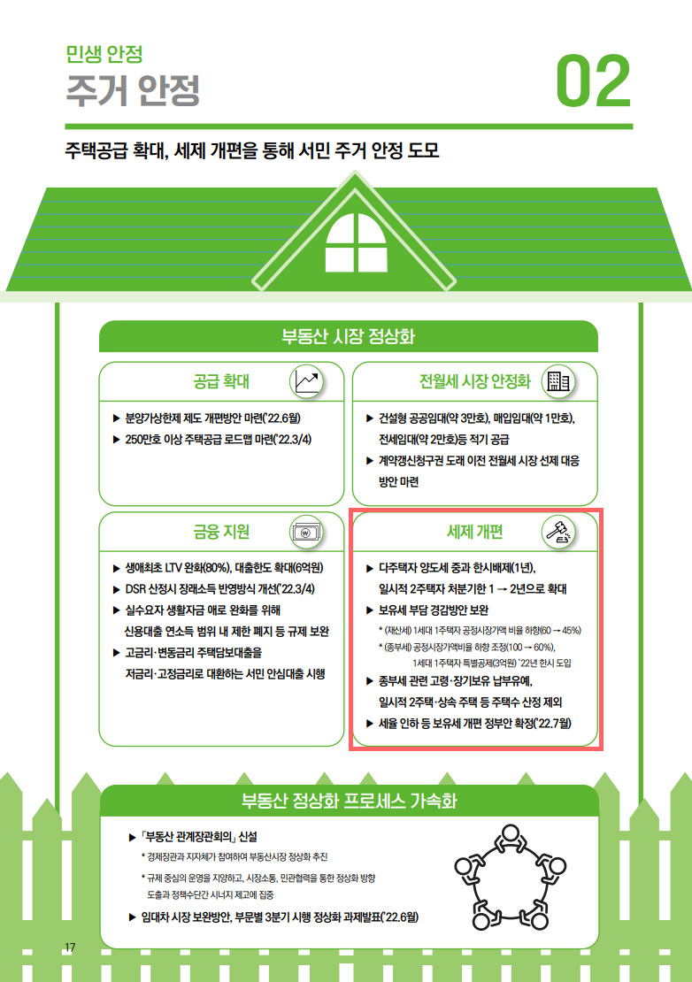 "종합부동산세와 재산세를 통합 추진하겠습니다. 추진 과정에서 통합 이전이라도 세 부담 완화 조치를 실시하겠습니다"