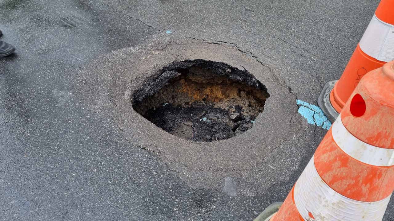 6월 24일 오전 6시 40분쯤 대구 남구 대명동 대명 성당 앞 도로에 지름 1m, 깊이 1m 크기의 땅 꺼짐 현상이 발생했습니다.