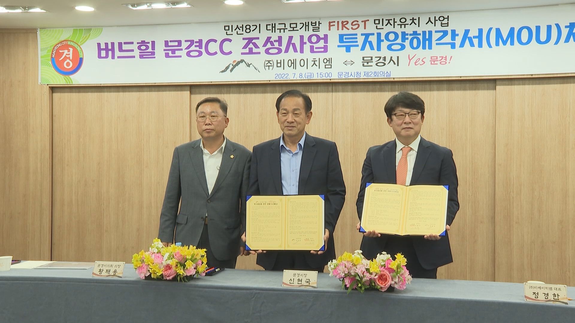 문경시가 주식회사 비에이치엠과 골프장과 숙박시설 건립 등 천억 원 투자를 약속하는 양해각서를 체결했습니다.