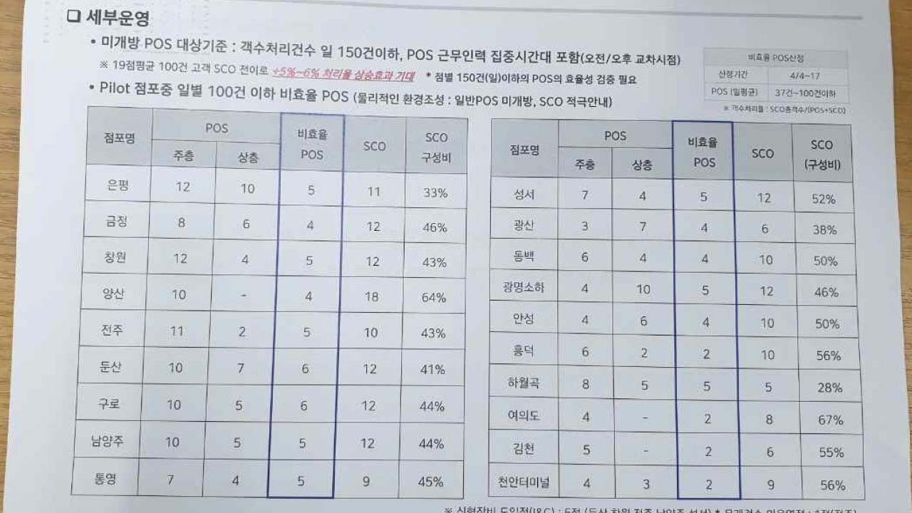 고객들을 이렇게 생각하게 만드는 의도인 것으로 보이는데 실제 문건을 받은 점포들은 고객들이 일반계산대에서 계산하기 위해 길게 줄을 서도 일반계산대를 추가 개방하지 않고 셀프계산대 이용을 유도했다고 합니다.