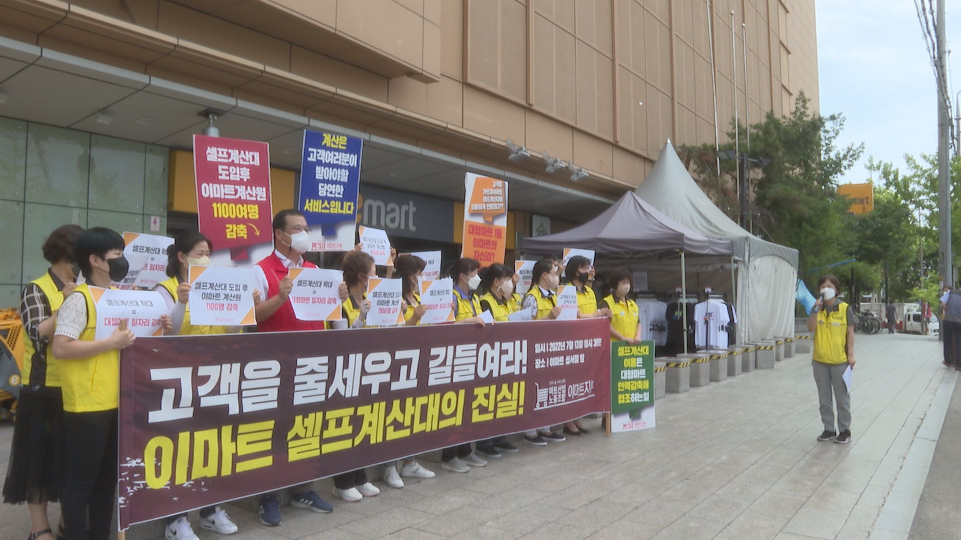 노조는 셀프계산대 도입 이후 2018년에서 2022년 사이 계산원 인력은 천여 명이 감축됐다고 밝혔습니다.