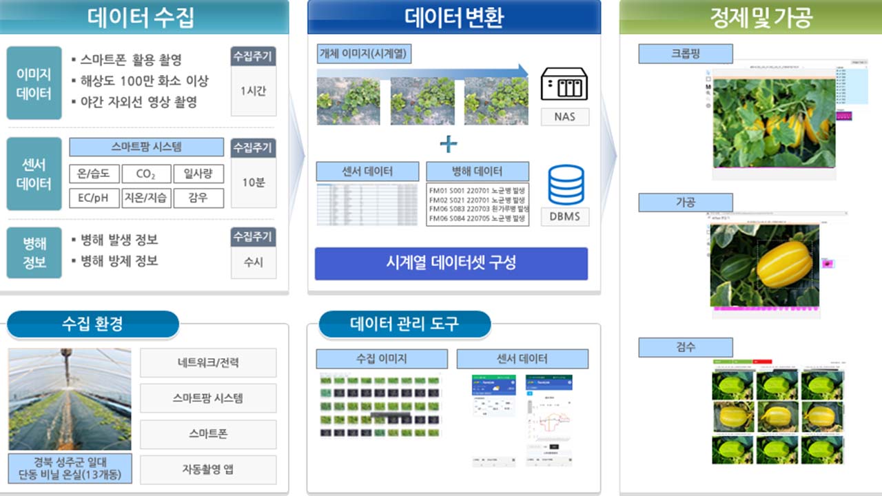 이번 사업은 농가에서 휴대폰으로 참외를 촬영하면 생육과 병해충을 신속하게 파악하고 분석할 수 있도록 하는 영상 기반의 인공지능 진단 기술을 개발하는 것입니다.