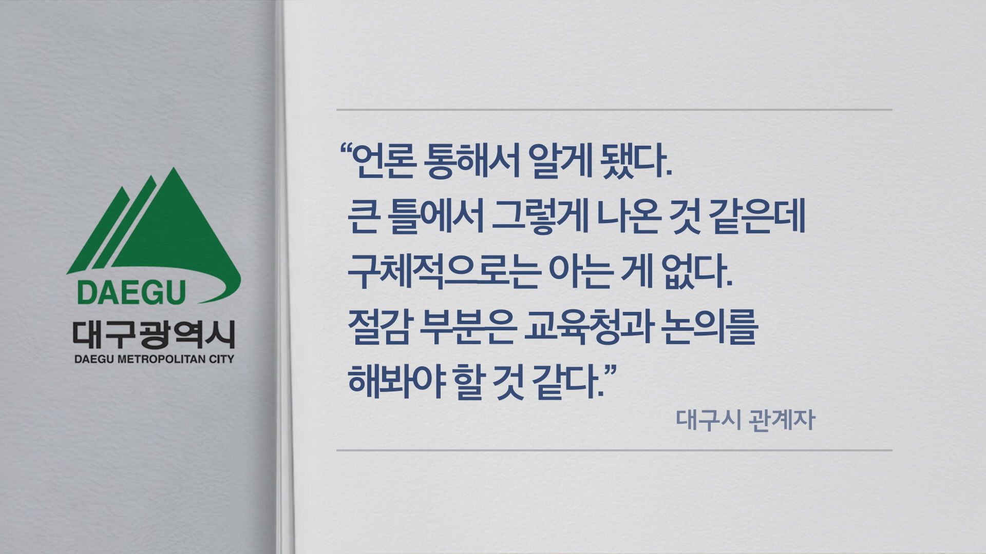 대구시가 예산을 줄인다면 교육청이나 구·군에서 더 부담해야 합니다.