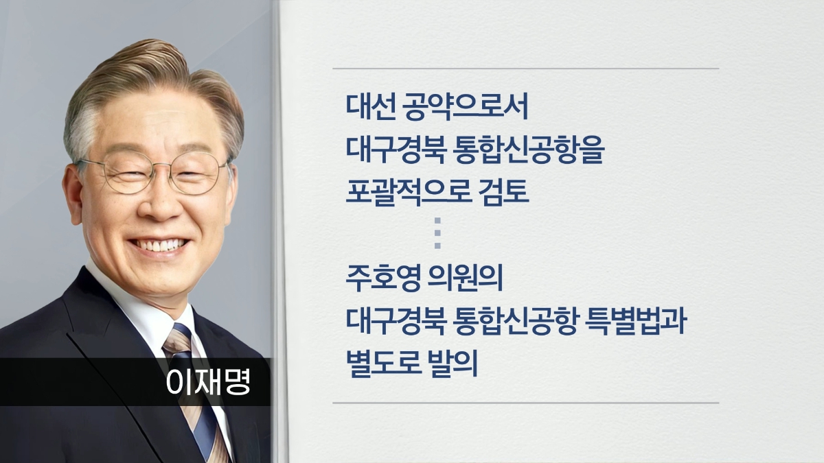 대선 공약으로서 대구·경북 통합 신공항 관련 법안 발의 등을 위한 포괄적인 검토 단계에 들어갔다고 밝혔습니다.