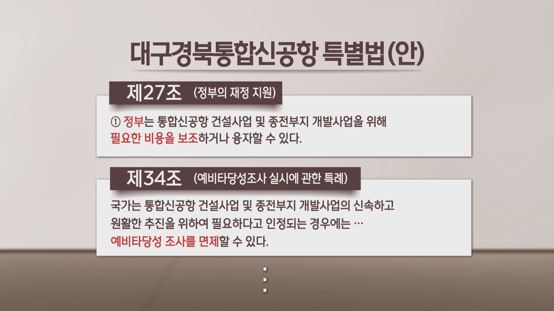 신공항 건설이나 종전 부지 개발사업에 국비 지원 근거와 예비타당성 조사 면제도 명시했습니다.