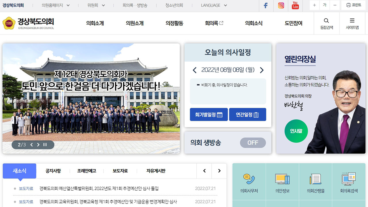 경상북도의회가 홈페이지를 새로 단장했습니다.