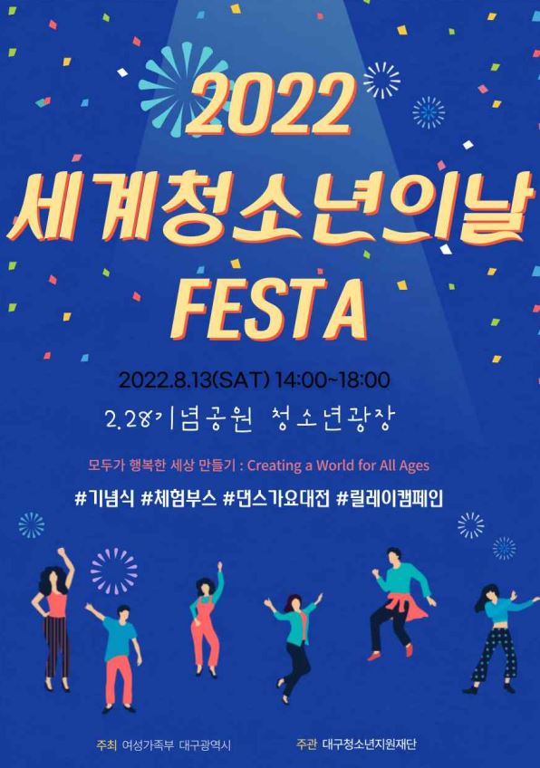 대구 청소년지원재단이 8월 12일 세계 청소년의 날을 맞아 청소년을 위한 다양한 프로그램을 마련합니다.