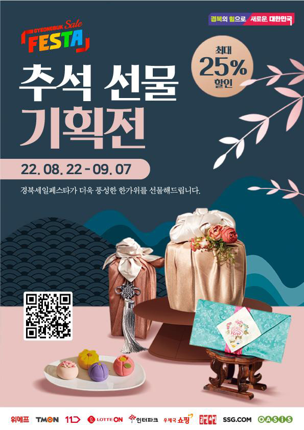 경상북도가 추석 명절을 맞아 '경북 세일 페스타 추석 선물 특별 할인 기획전'을 9월 7일까지 진행합니다.