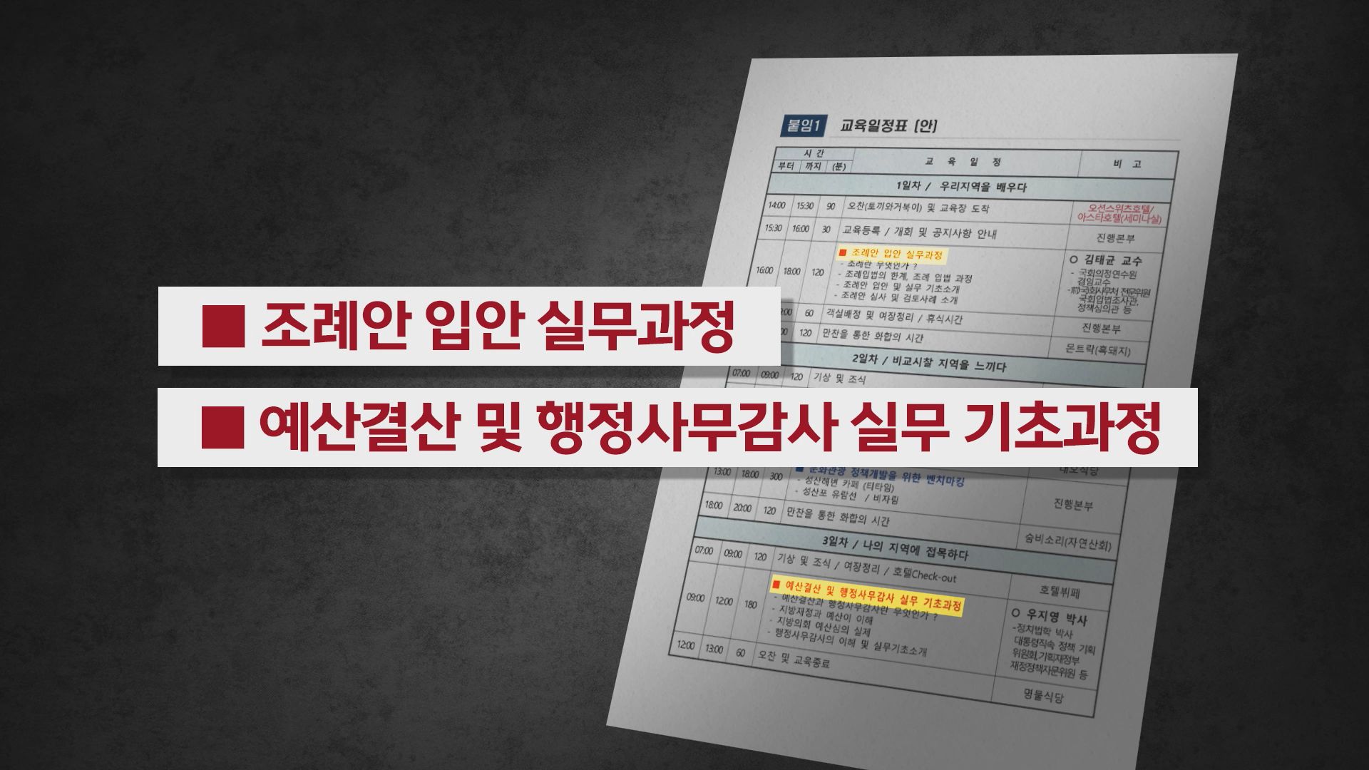 셋째 날은 세 시간 예정으로 진행되는 예산결산과 행정사무 감사 실무 강의를 끝으로 제주도 대구시의회 의원 국내 연수를 마치는 것으로 돼 있습니다.