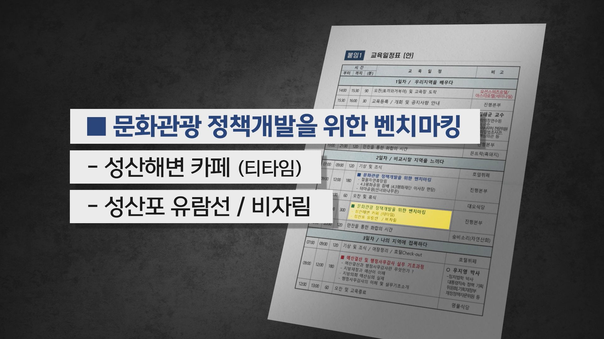 그런데 일정표를 보면 제주도에 도착한 첫날 두 시간, 둘째 날 세 시간 강의를 제외하면 연수라고 부르기 무색할 정돕니다.