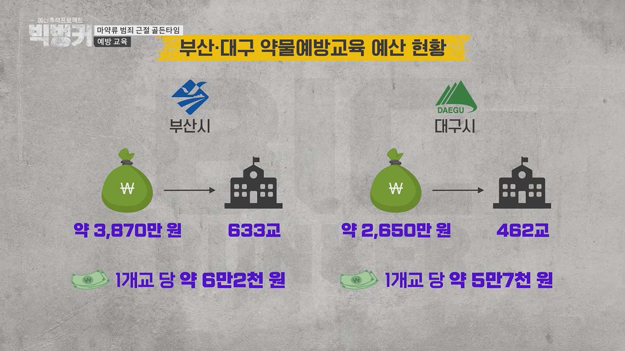마약류 예방 교육 예산, 대구 학교당 5만 7천 원···부산은 6만 2천 원