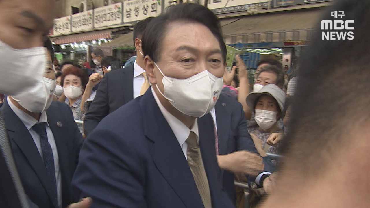 여당 지지세가 강한 대구·경북에서 떨어진 국정 동력을 회복하고, 분위기 전환을 시도하려는 포석 아니냐는 관측도 나오는데요, 회의를 마친 뒤 대구 서문시장을 찾은 윤 대통령은 시민들의 환호 속에 이 같은 의중을 내비쳤습니다.