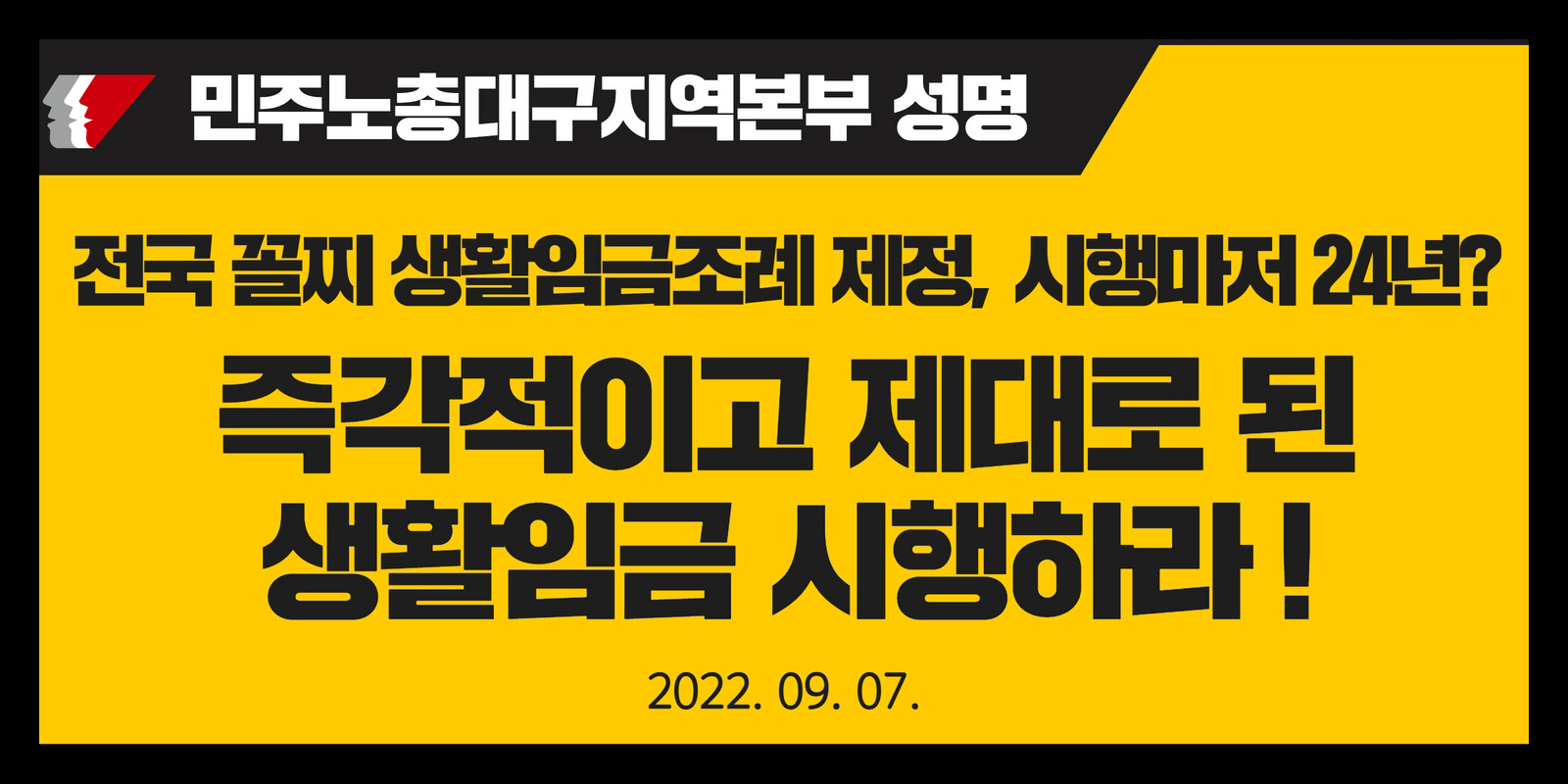 민주노총 대구본부는 성명을 내고 "대구시가 생활임금 조례를 전국에서 가장 늦게 도입한 데다 시행까지 늦어지고 있다"며 즉각적이고 제대로 된 생활임금제를 당장 시행할 것을 촉구했습니다.