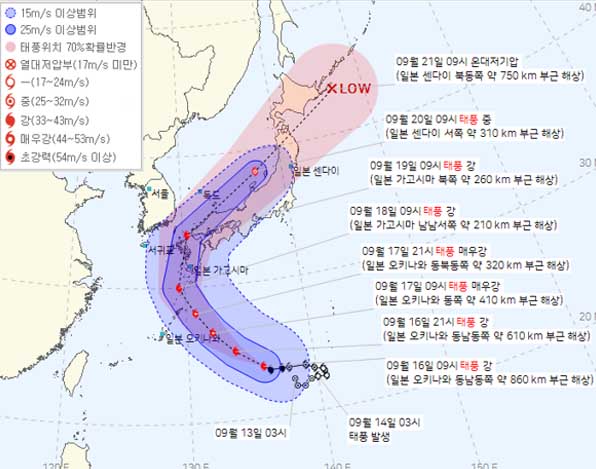 제14호 태풍 난마돌 북상으로 월요일인 9월 19일 새벽부터 포항에 많은 비가 예상된다는 기상청 예보가 나와 태풍으로 유실된 오천읍 냉천 제방 복구에 비상이 걸렸습니다.