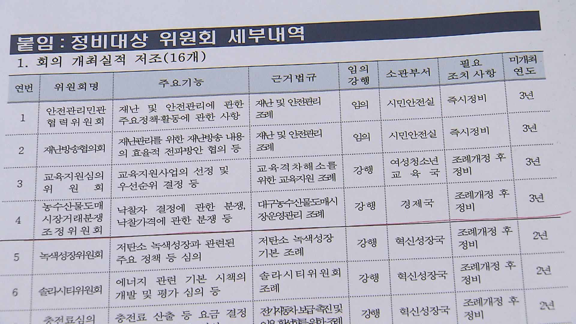 대구시가 기능을 잃은 위원회가 많다며 유명무실한 위원회는 없애기로 했습니다.