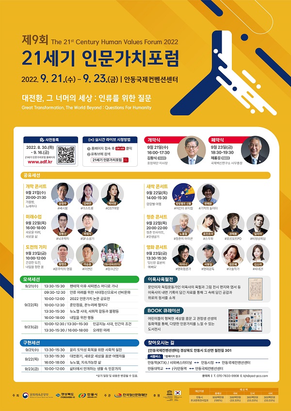 '21세기 인문가치 포럼'이 '대전환, 그 너머의 세상'을 주제로 9월 21일 안동 국제컨벤션센터에서 개막해 사흘 동안 계속됩니다.