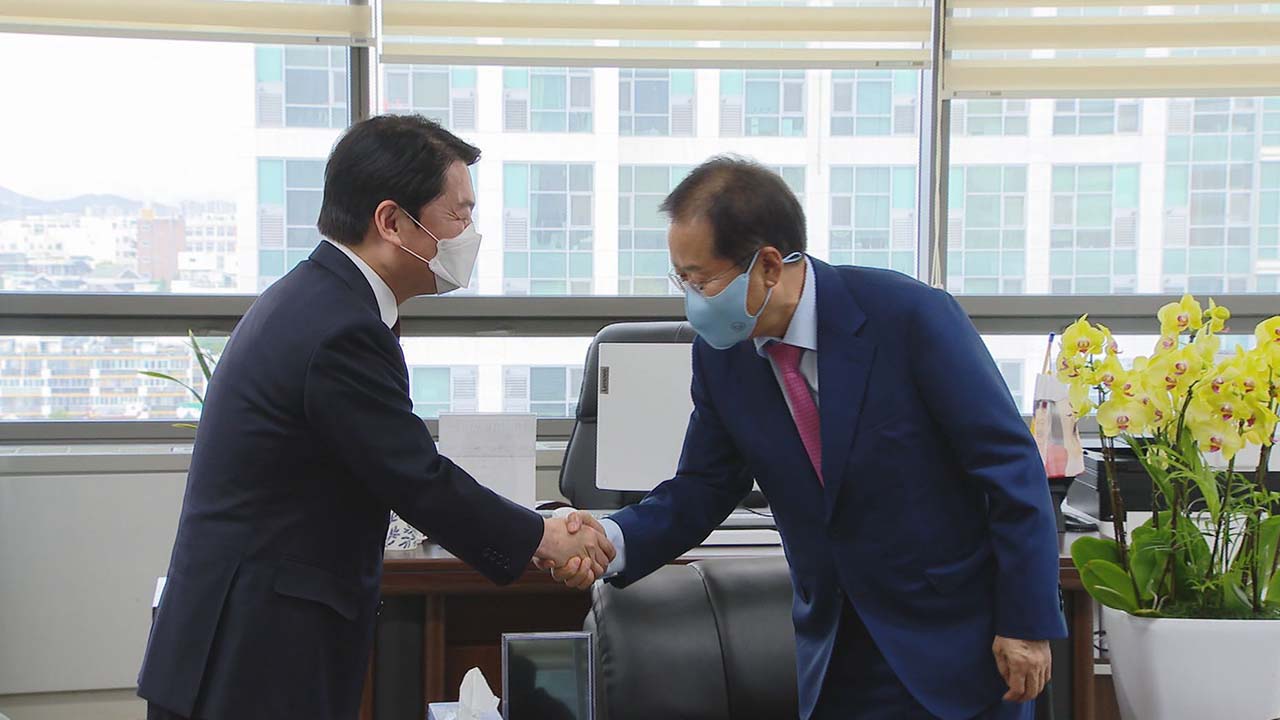 홍 시장은 당과 이준석 전 대표가 서로 비난하는 것을 두고 "서로 조롱 정치만 하게 되면, 감정이 격해져 봉합이 안 되고 통합도 안 된다"고 우려를 나타냈습니다.