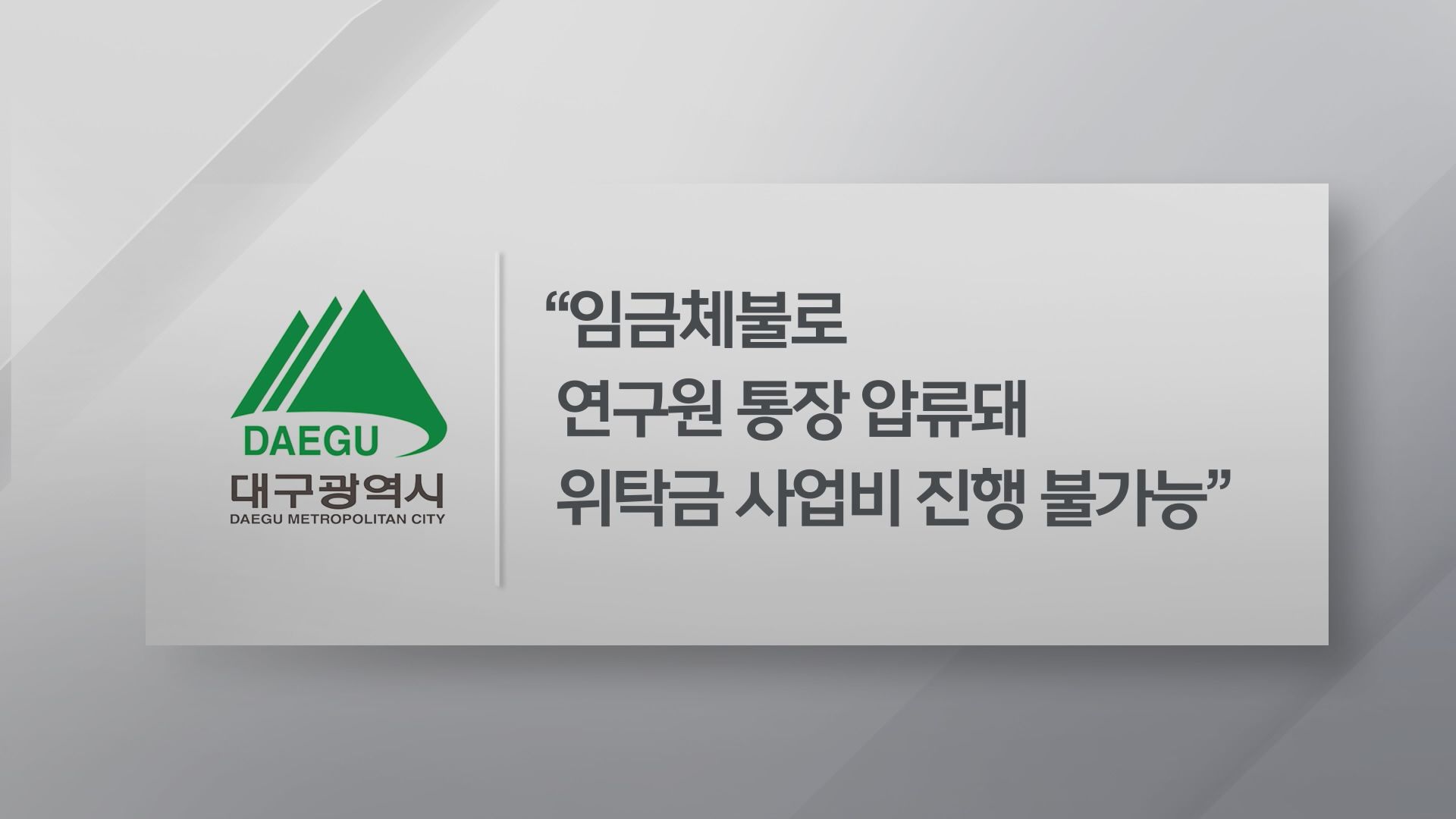 대구시는 임금체불 문제로 연구원 통장이 압류돼 민간위탁금과 보조금 사업비 집행이 불가능해 내린 결정이라고 밝혔습니다.