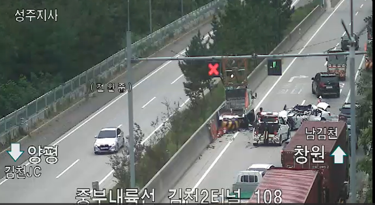 9월 28일 오후 2시 반쯤 경북 김천시 아포읍 중부내륙고속도로 김천2터널 인근에서 달리던 승용차가 도로 공사를 위해 정차해 있던 작업 차량을 들이받았습니다.