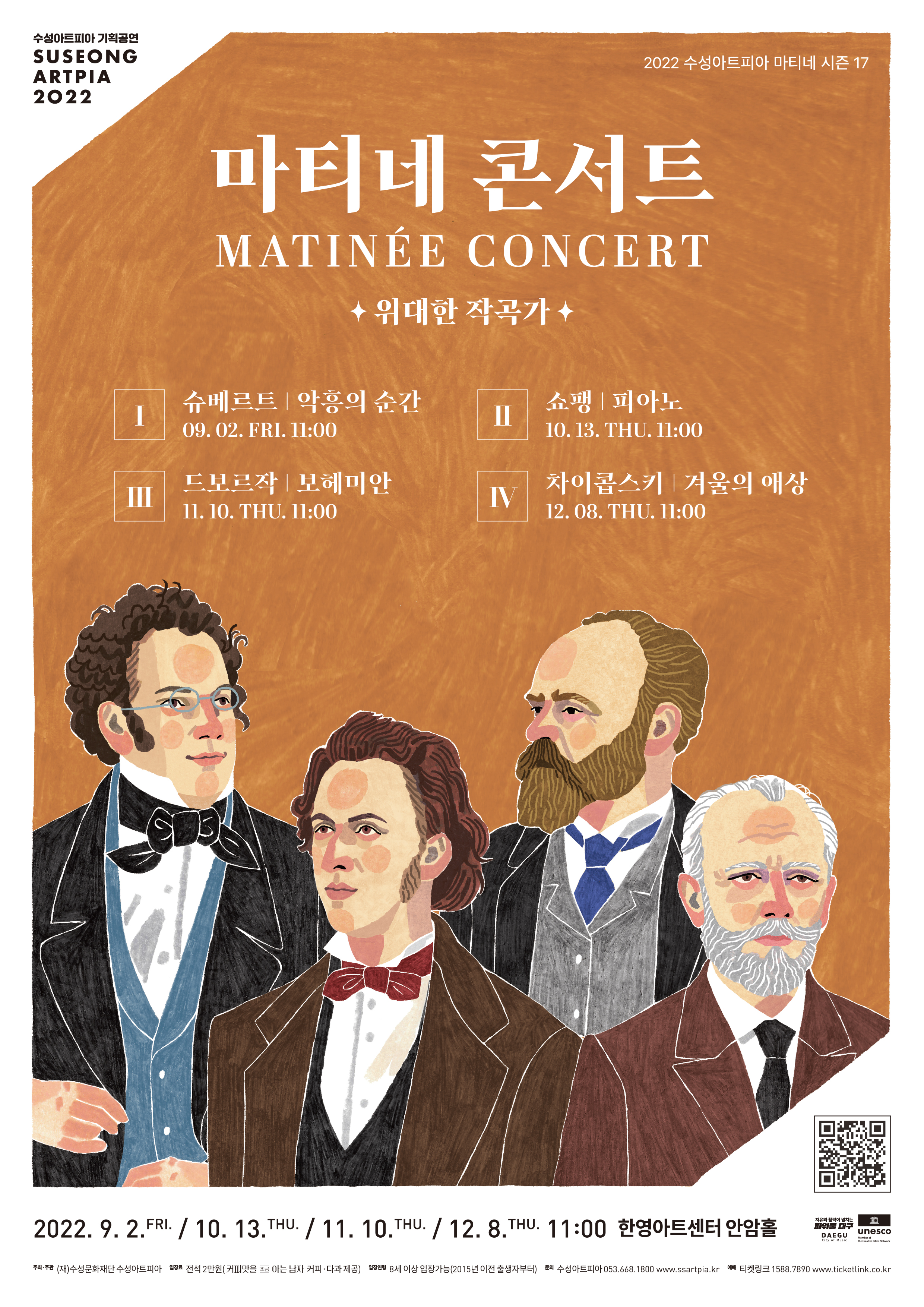 수성아트피아는 10월 13일 오전 11시 한영아트센터 안암홀에서 2022년 '위대한 작곡가' 시리즈 중 하나인 '10월 쇼팽의 피아노'를 공연합니다.