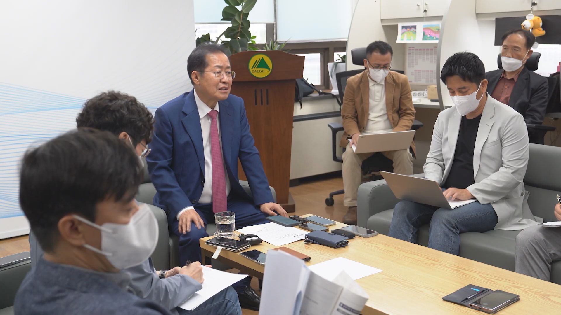 한편 이준석 전 국민의힘 대표 징계에 대해 어떻게 생각하냐는 질문에 홍 시장은 "표현의 자유가 있으면 징계의 자유도 있다"며 징계 대상이 된다고 강조하면서 "당 대표는 무겁게 처신해야 하는데 그렇게 하지 않아 자업자득한 것"이라고 평가했습니다.