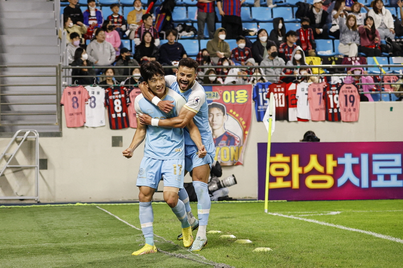 빗속에서도 경기 내내 쉬지 않고 응원을 보냈던 8천여 팬들과 선수들은 경기 종료 휘슬과 함께 뜨거운 함성으로 한 발 더 다가온 잔류 가능성에 대한 기쁨을 나눴습니다.