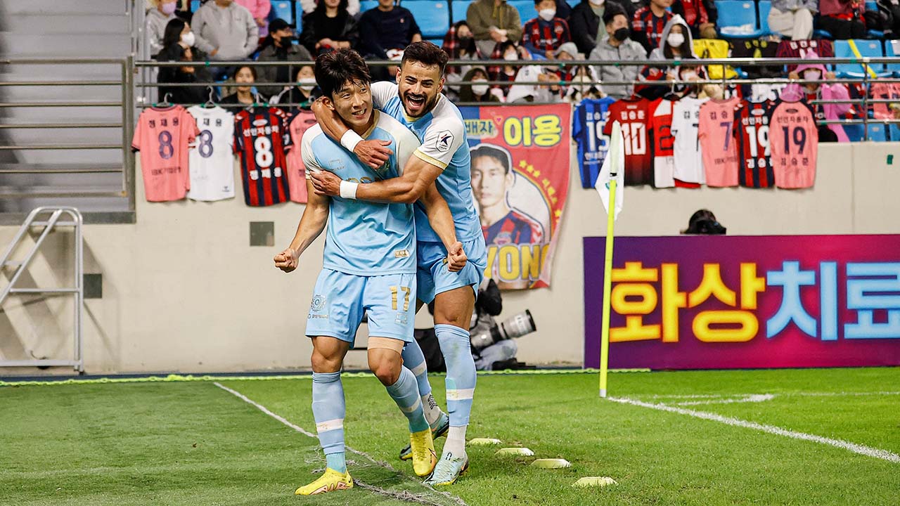 좋은 흐름을 보인 대구가 이날 수원삼성에게 승리를 거두고 같은 시간 김천상무가 경기를 내주면 대구는 두 경기를 남겨놓은 시점에서 1부리그 잔류를 확정 짓게 됩니다.
