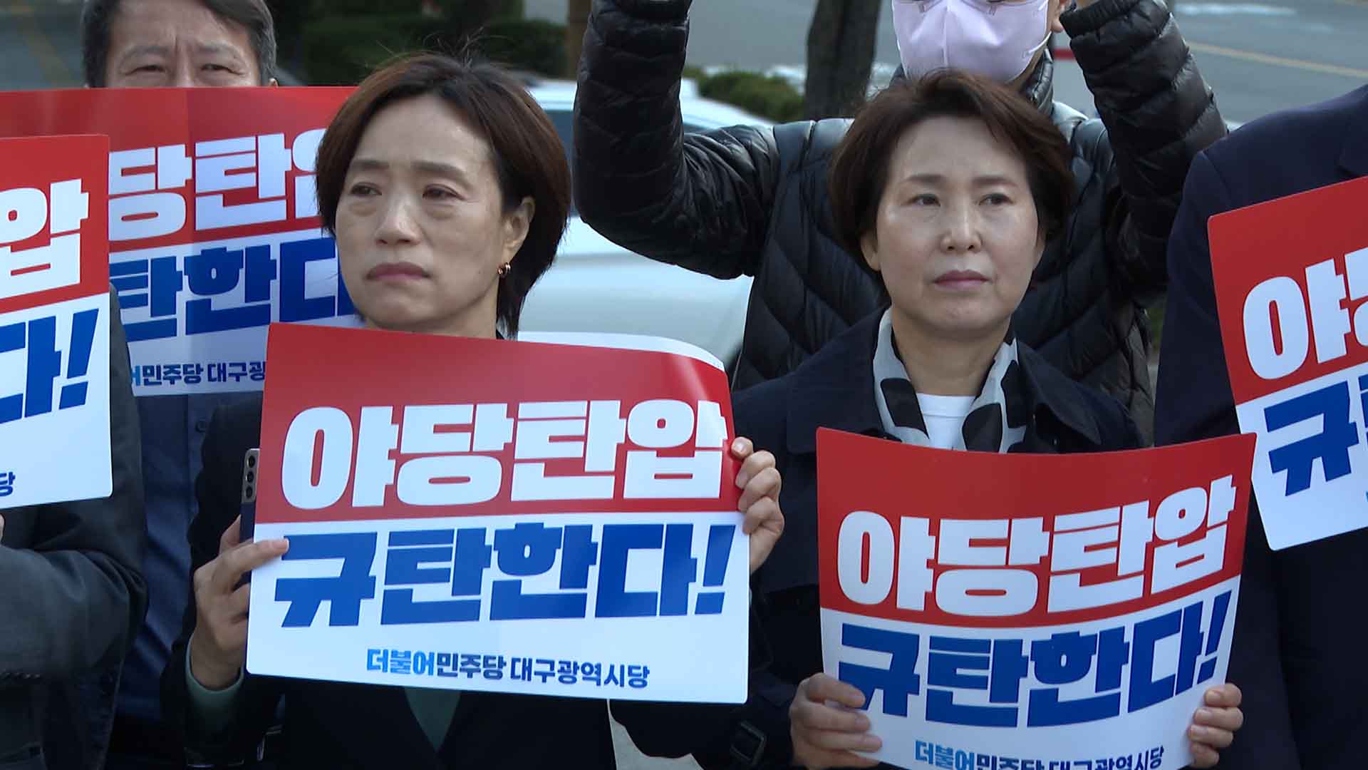 더불어민주당 대구시당은 대구지검 앞에서 기자회견을 열고 검찰의 더불어민주당 중앙당사 압수수색 시도를 '정치 탄압', '보복 수사'라고 규탄했습니다.