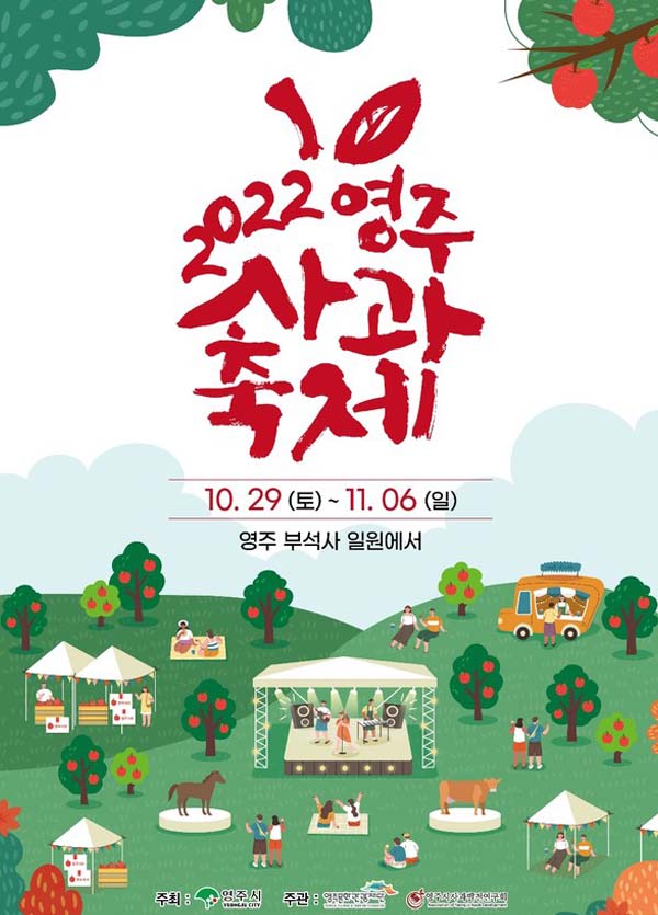 영주 사과 축제가 10월 28일에 개막해 오는 11월 6일까지 부석사 일원에서 열려 영주사과 판매와 부석사 인문학 콘서트 등이 진행됩니다.