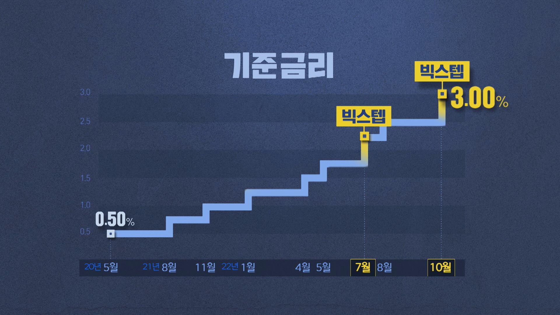 불과 15개월 만에 국내 기준 금리는 0.5%에서 3.0%까지 뛰었습니다.