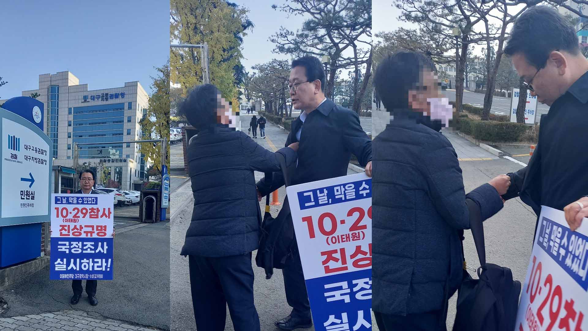10·29 참사 진상 규명을 위한 국정조사 실시를 촉구하며 1인 시위를 하던 더불어민주당 강민구 대구시당 위원장이 행인에게 폭행당해 경찰이 수사에 나섰습니다.