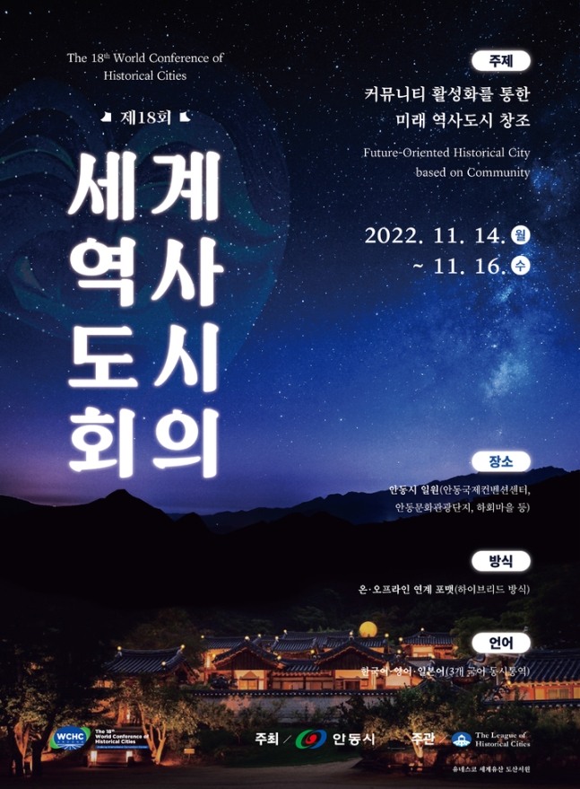 제18회 세계역사도시회의가 21개국 48개 도시가 참가한 가운데 11월 14일 안동 국제컨벤션센터에서 개막해 16일까지 사흘간 이어집니다.