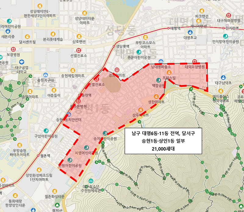 대구시 상수도 사업본부는 11월 17일 밤 10시부터 18일 새벽 사이 남구 대명 6동과 10동 전역, 달서구 송현1동과 상인1동 21,000여 세대에 흐린 수돗물이 나올 수 있다고 밝혔습니다.