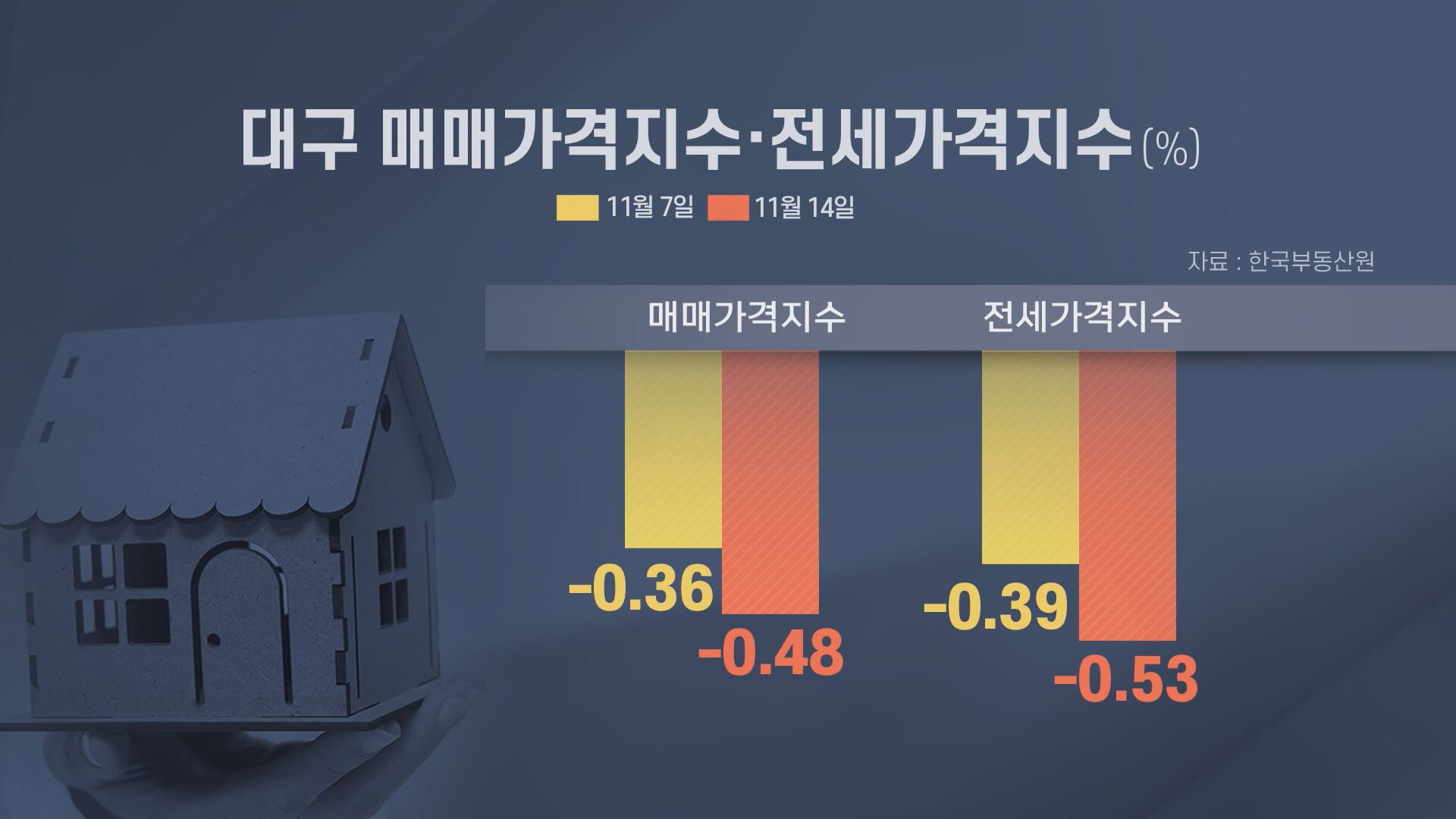 매매 가격보다 전세 가격 하락 폭이 더 큰 것이 눈에 띄는데요. 대구도 마찬가지입니다.