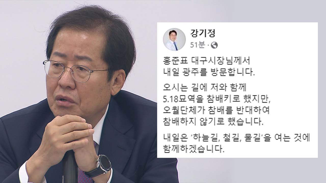 강기정 광주시장은 자신의 SNS를 통해 홍준표 시장이 자신과 함께 5·18 묘역을 참배하기로 했지만 "오월 단체가 참배를 반대해 참배하지 않기로 했다"고 밝혔습니다.