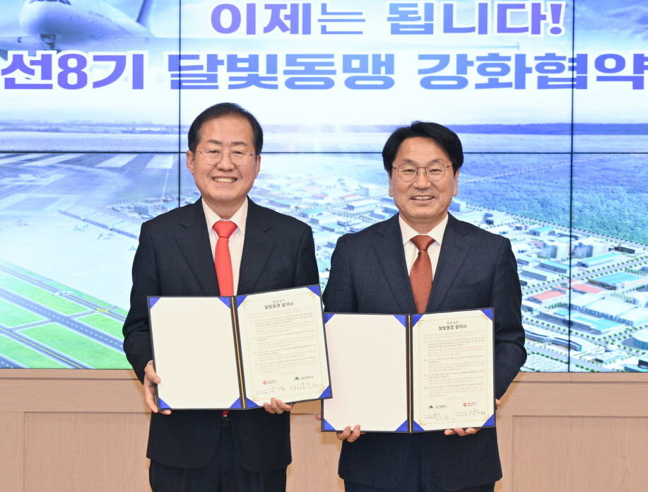 홍준표 대구시장과 강기정 광주시장이 11월 25일 광주시청에서 '대구·광주 민선 8기 달빛동맹 강화 협약식'을 했습니다.