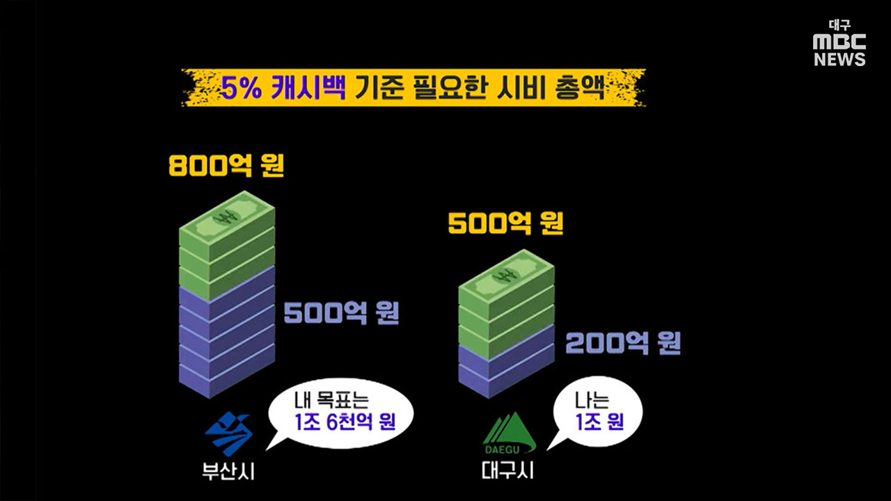 이게 없어진다면 예산이 반토막 나는 셈이 됩니다. 결국 시민들이 받았던 캐시백이나 할인이 반토막이 날 수 있고, 그렇게 안 되려면 대구와 부산이 예산을 두 배 더 투입해야 가능하게 됩니다.