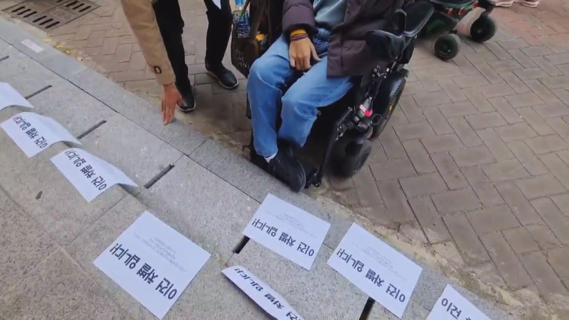 장애인들이 경사로 설치를 요구하고 나선 지 26일 만에 변화가 생겼다고요.