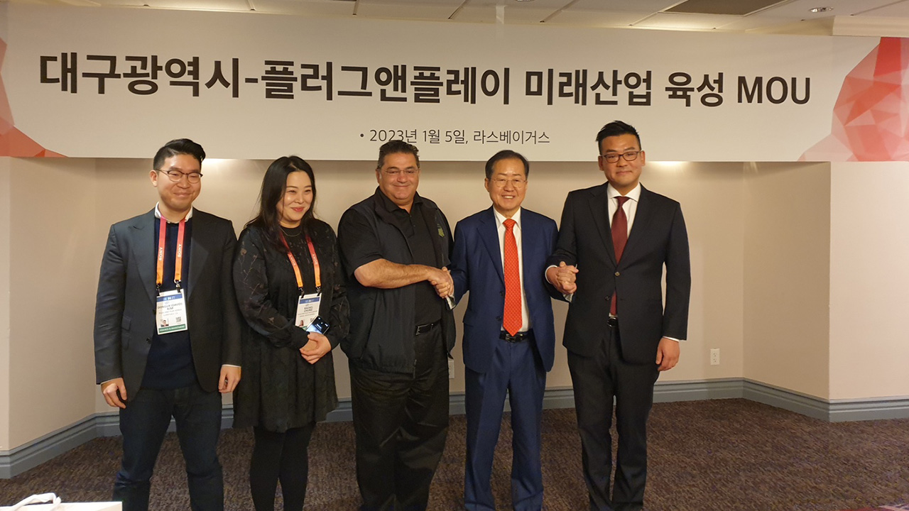 대구시는 미국 현지 시각 1월 5일 오전 10시 미국 라스베이거스 플라밍고 호텔에서 세계 최대 규모의 벤처투자사 '플러그 앤 플레이'와 '글로벌 벤처 창업기업 육성을 위한 업무 협약'을 맺었습니다.