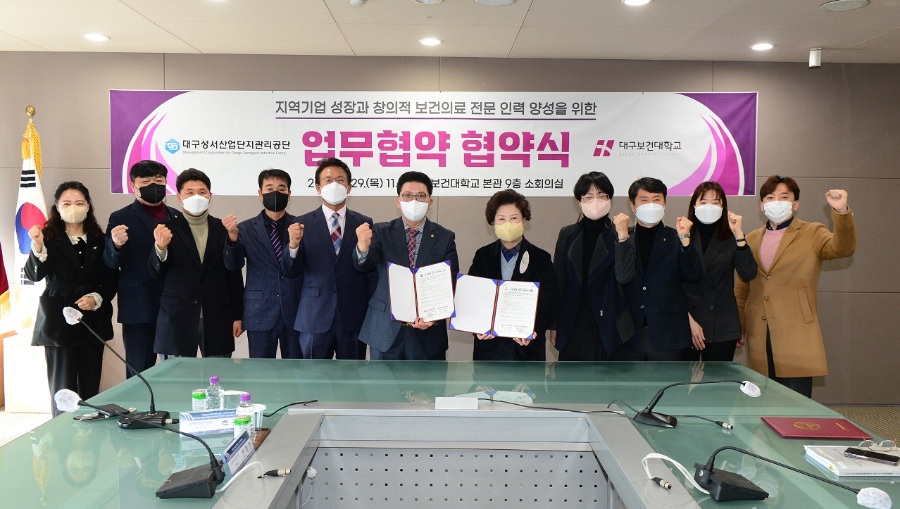 대구보건대와 대구성서산업단지관리공단은 상호 교류와 협력을 위한 산학협력 업무협약을 맺었습니다.
