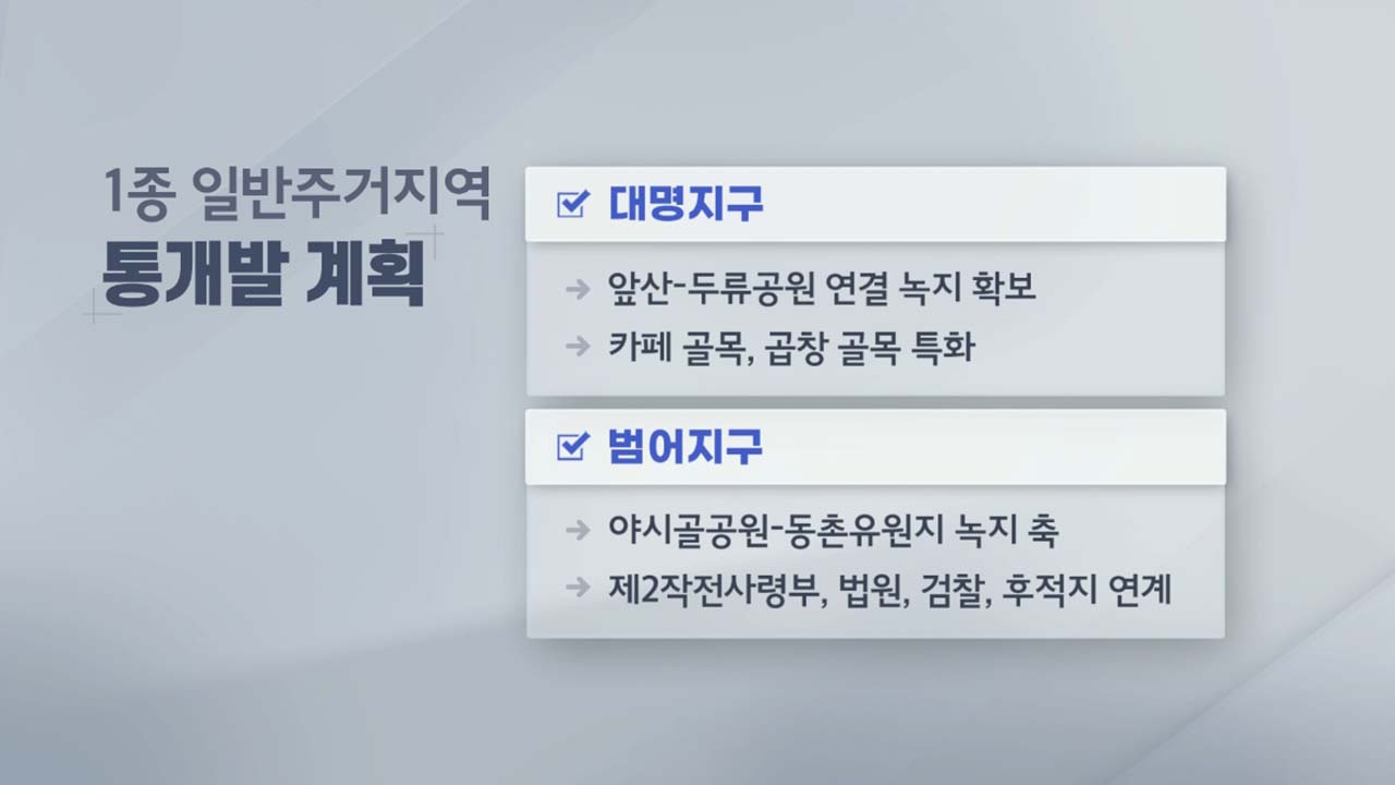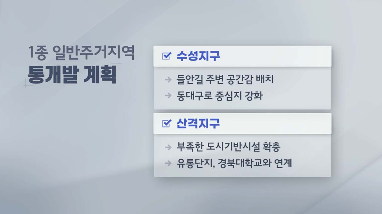 대구시가 오랫동안 저층 주거지역으로 관리해오던 대규모 단독주택지를 민간이 주도해 큰 구획으로 묶어 전체 구획 단위로 개발하도록 하는 가이드라인을 제시했습니다.
