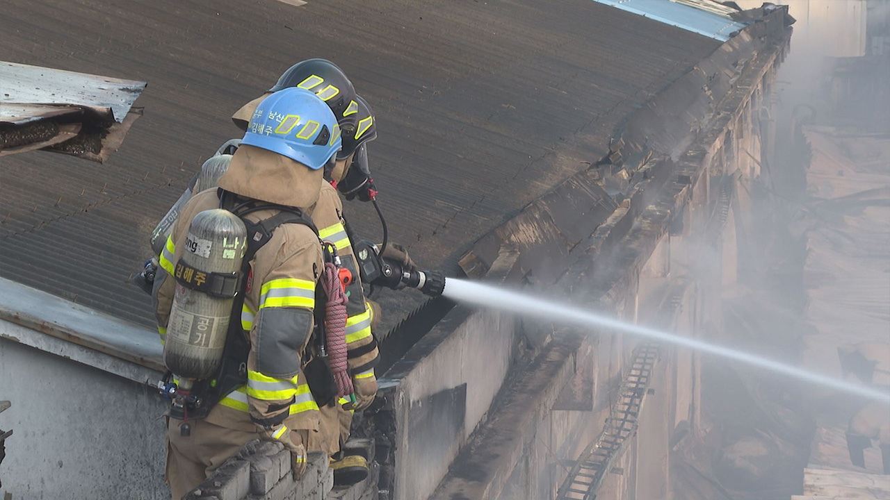 하지만 불이 난 공장 천장이 무너져내리면서 섬유 원단, 가연물과 뒤섞여 속에 있는 불을 완전히 끄는 데는 시간이 더 걸렸습니다.