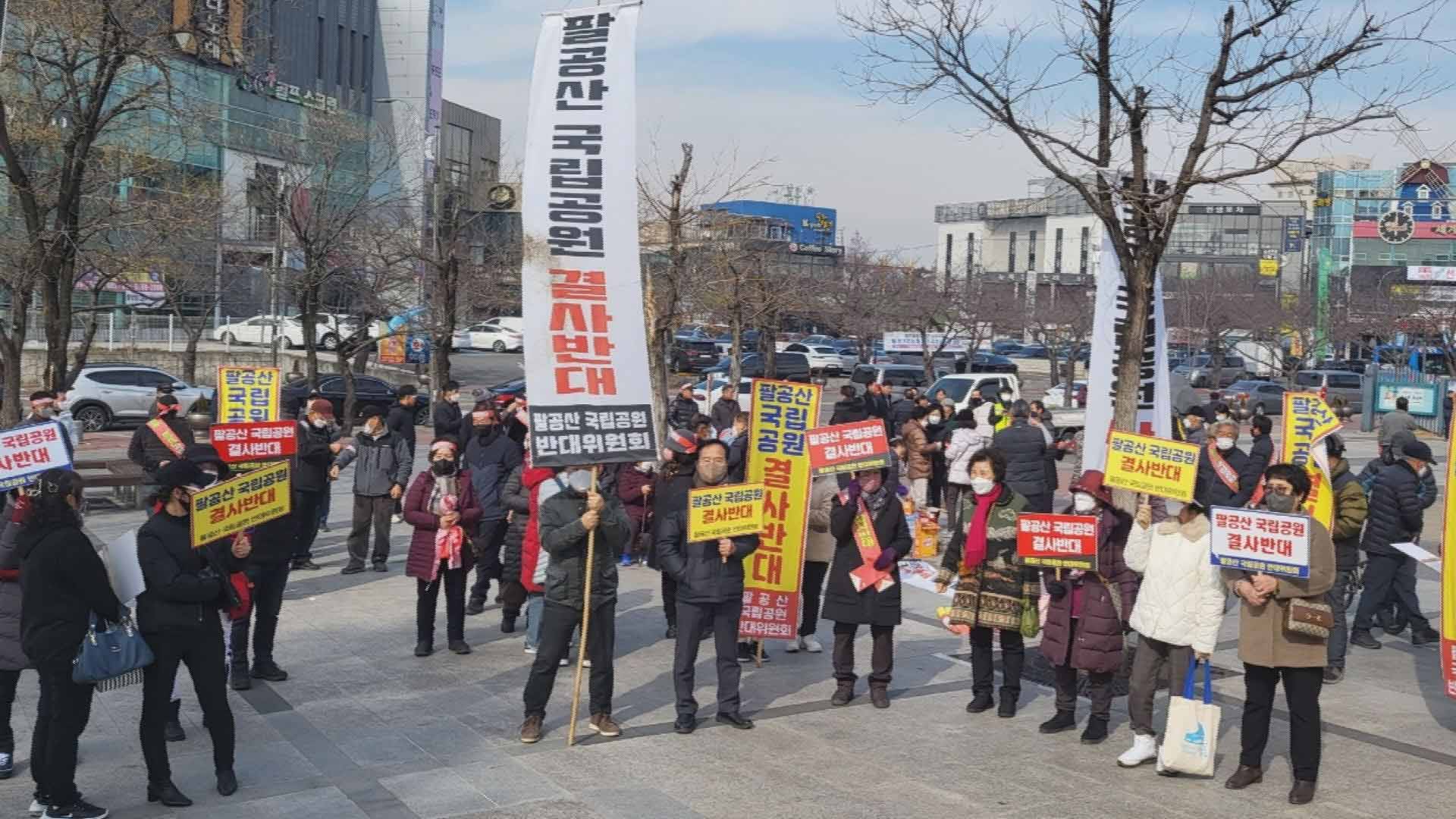 지주 200여 명으로 구성된 팔공산국립공원반대위원회가 규탄 시위를 벌이면서면서 결국 무산됐습니다.